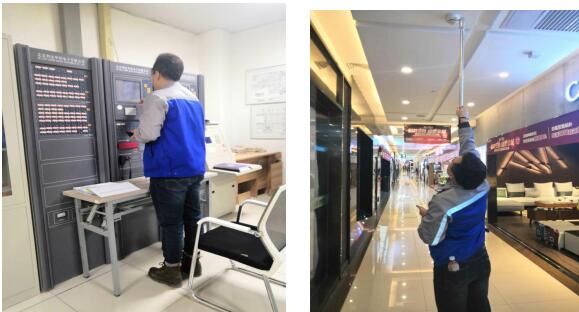 2019年3月27日,甘肅安卓工程技術有限公司消防事業(yè)部技術人員達選飛、任有輝前往蘭州市城關區(qū)雁北路對蘭州居然燈飾城的消防設施進行維護保養(yǎng)工作。