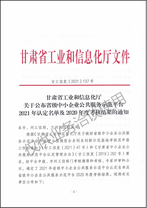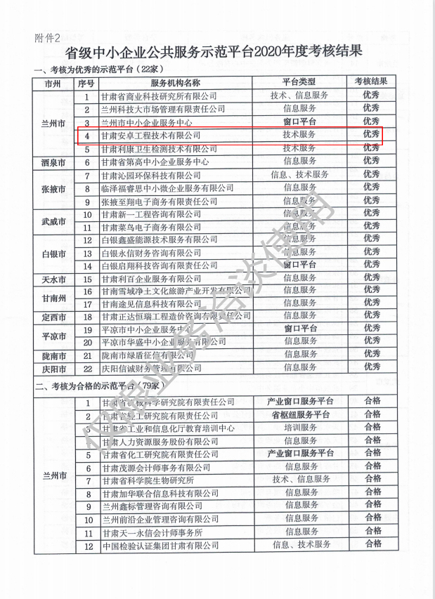 省級中小企業(yè)公眾服務示范平臺考核結果