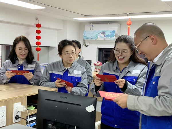 開(kāi)門(mén)利是,也叫利事,取其大吉大利、好運(yùn)連連之意。2月19日正月初十,龍年開(kāi)工首日,在喜氣團(tuán)結(jié)的氣氛中,甘肅安卓工程技術(shù)有限公司董事長(zhǎng)龔復(fù)學(xué)、副董事長(zhǎng)田苗、總經(jīng)理孫云鶴等一行人,一起走訪安卓蘭州總部每一間辦公室,將一封封“大紅好運(yùn)”送到安卓人手中,為開(kāi)門(mén)紅鼓干勁、強(qiáng)信心,開(kāi)啟福氣滿滿的一年。