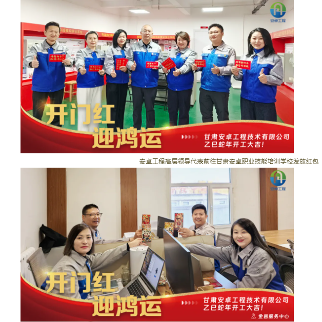 新年新氣象,開工迎鴻運(yùn)!伴隨著新春的喜慶氛圍,甘肅安卓工程技術(shù)有限公司正式迎來了乙巳蛇年的開工日。在此,我們向全體員工、合作伙伴以及一直幫助我們的朋友們致以最誠摯的祝福和感謝!