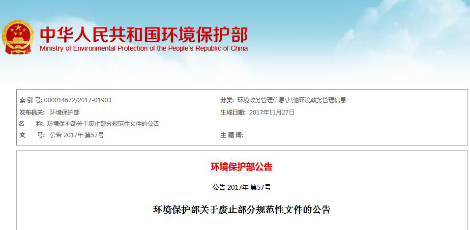 環(huán)境保護(hù)部決定廢止的規(guī)范性文件